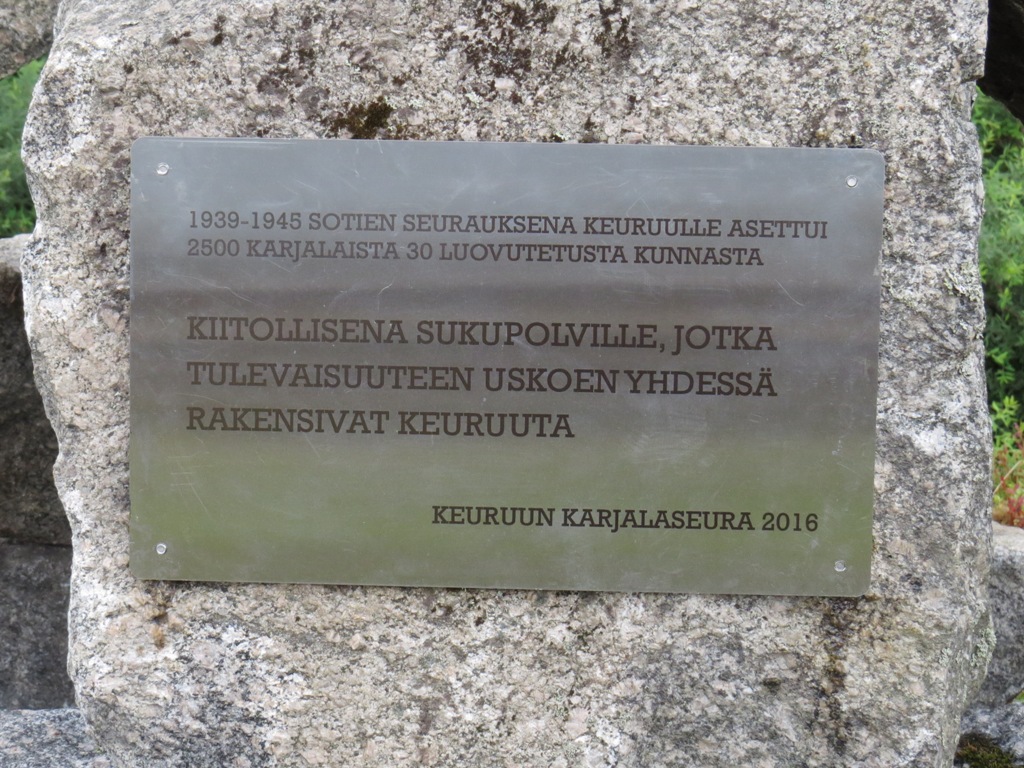 Uusi koti –muistomerkki Keuruun Veteraanipuistossa. Pystytti Keuruun Karjalaseura 7.8.2016.