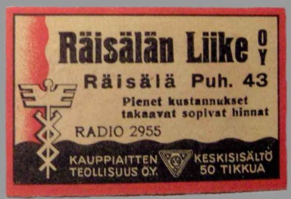 Tulitikkuaskin etiketti.