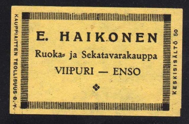 Tulitikkuaskin etiketti.