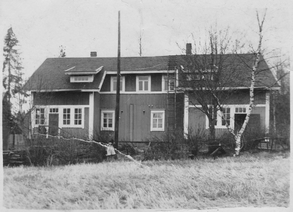 Johan Edvard Rutin kauppa Nuijamaalla. Kaupan sisäänkäynnit molemmista päissä. Vanha osa keskellä, jossa oli aiemmin Adam Haikosen (s.1862 k.1939) kauppa. Rakennus paloi sodassa heinäkuussa 1941 yhtä aikaa kolmen muun talon kanssa. Todennäköisesti venäläisten suorasuuntaustykkien laukauksista.