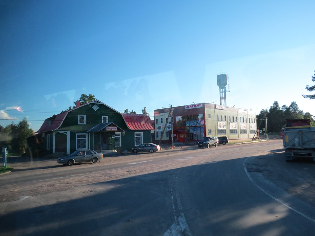 Räisälän keskustaa linja-auton ikkunasta.