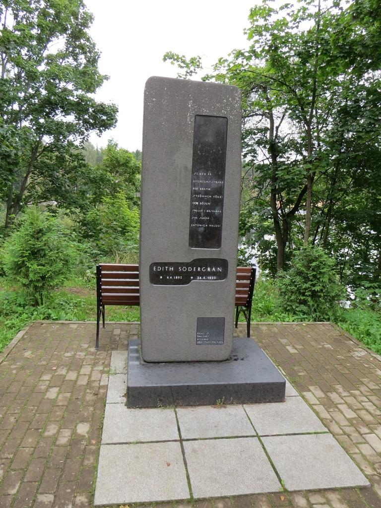 Edith Södergranin hautakivi Raivolan keskustassa. Wäinö Aaltosen veistämä Södergranin hautamuistomerkki tuhoutui vuonna 1939. Onkamojoen rannalle pystytettiin uusi muistomerkki vuonna 1960.