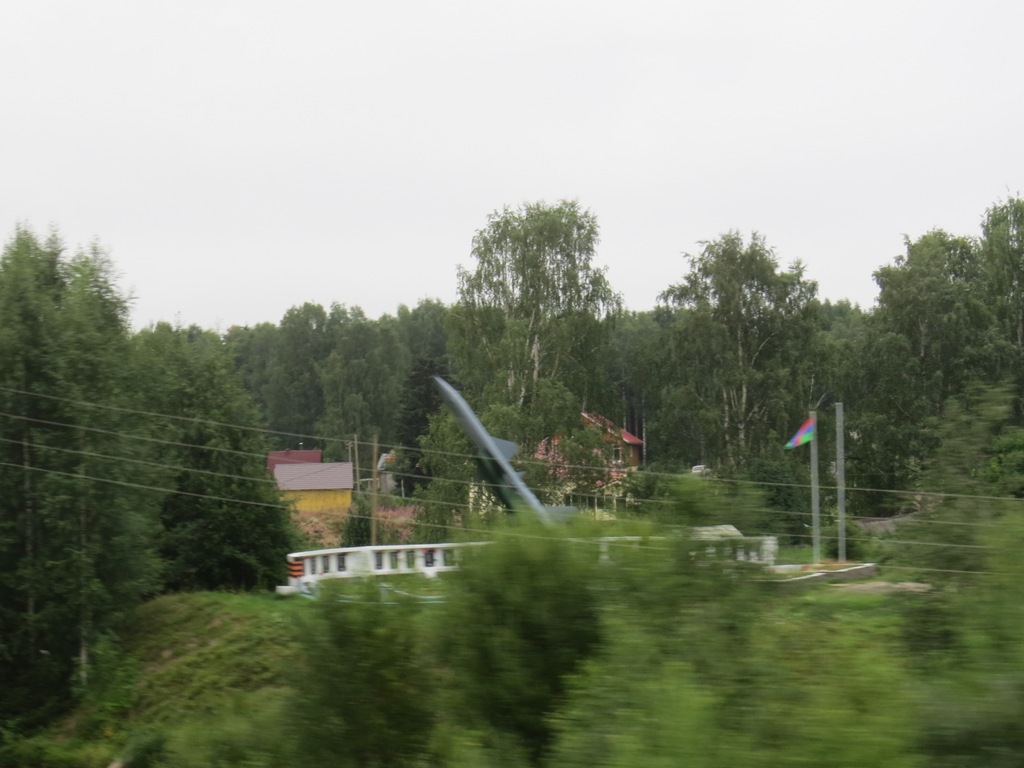 Venäläinen ohjusmuistomerkki Petroskoin ja Prääsän välillä. Kuulemma tällä ohjustyypillä tiputettiin amerikkalainen vakoilukone 1960-luvulla.