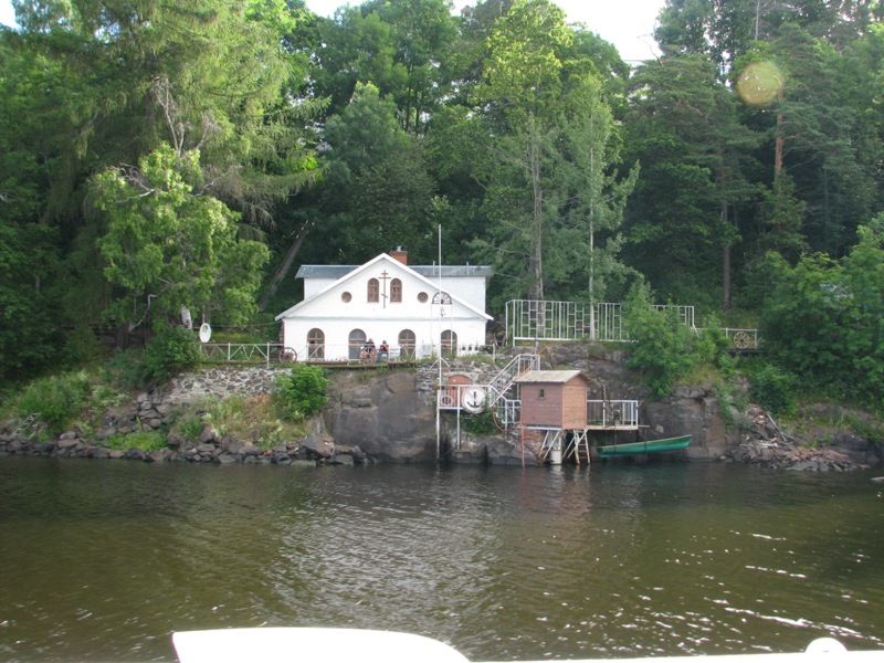 Näkymää Valamon satamaan tullessa.