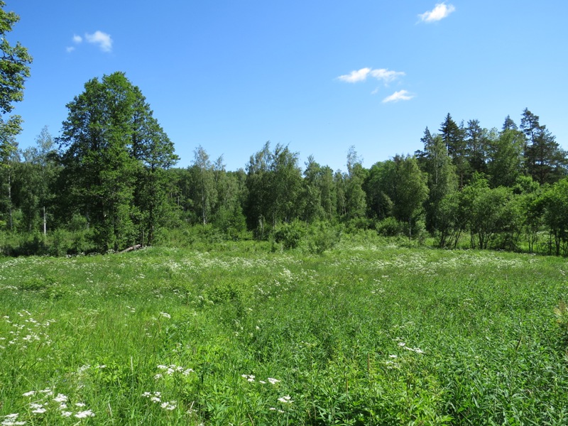 Läheniemen talon nurkalta näkymä lammelle päin.