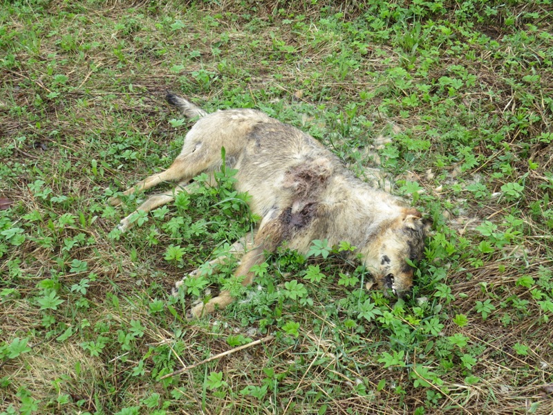 Kuollut susi Kuuterselän muistomerkin lähellä.