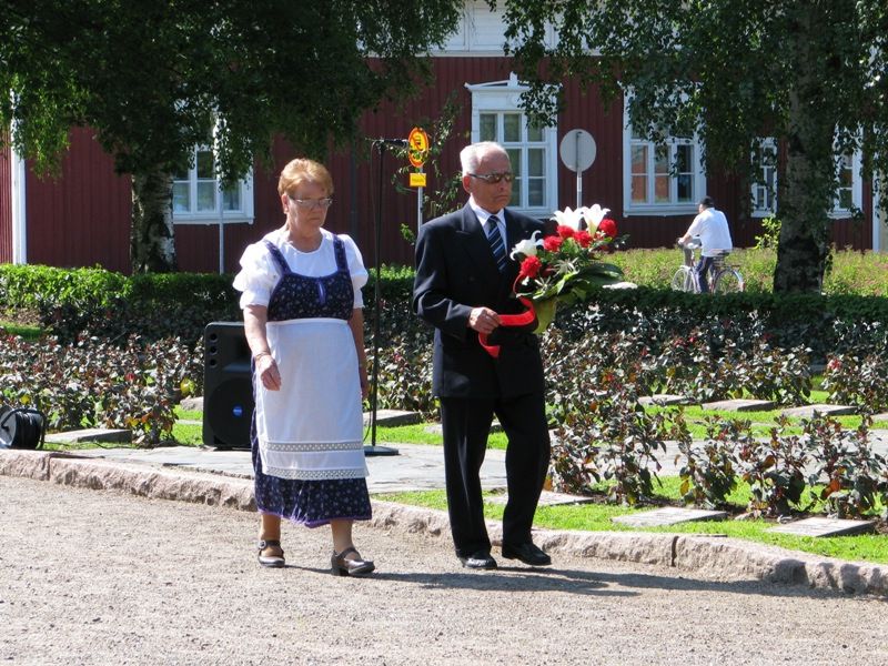 Kunnianosoitus Sankarihaudalla ja Karjalaan jääneiden vainajien muistomerkillä. Seppeleen laski Karjalaan jääneiden muistomerkille Salme Mäkinen ja Aarne Räkköläinen.