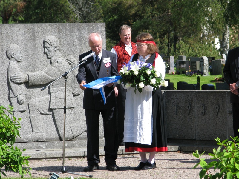 Kunnianosoitus Sankarihaudalla ja Karjalaan jääneiden vainajien muistomerkillä. Seppeleen laski sankarihaudalle Robert J. Rainio ja Kirsti Mäkitalo.