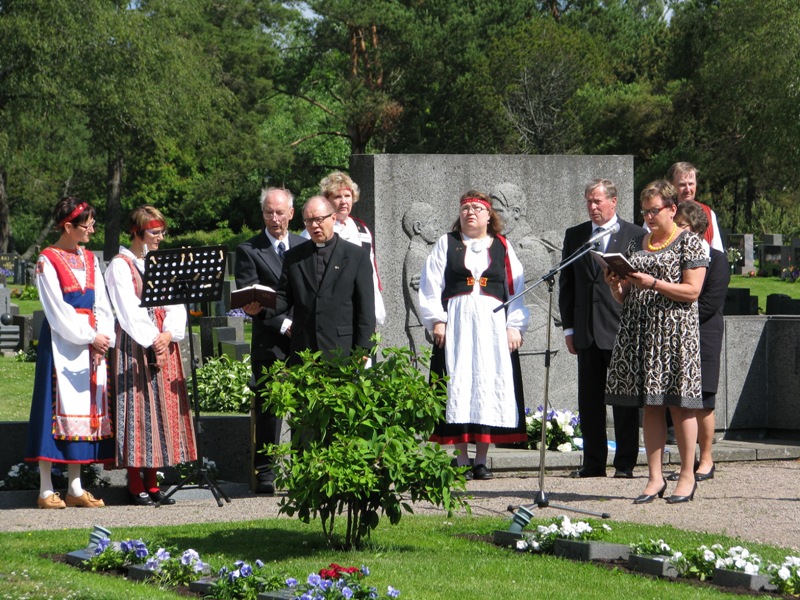 Kunnianosoitus Sankarihaudalla ja Karjalaan jääneiden vainajien muistomerkillä.