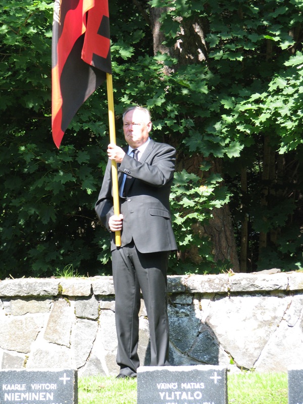 Kunnianosoitus Sankarihaudalla ja Karjalaan jääneiden vainajien muistomerkillä. Kuvassa Jorma Haikonen.