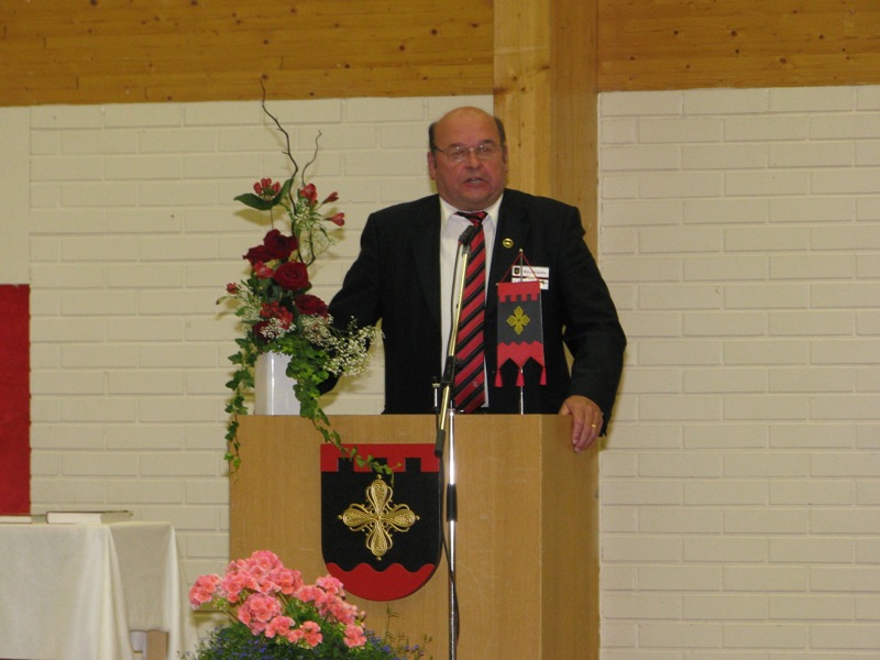 Karjala-seurojen Satakunnan piirin pj. Jouko Hämäläinen puhui ansiomerkkien jaon yhteydessä.