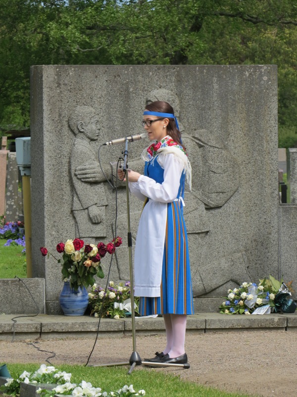 Kunnianosoitus Sankarihaudalla ja Karjalaan jääneiden vainajien muistomerkillä. Puhe Janina Jalonen.