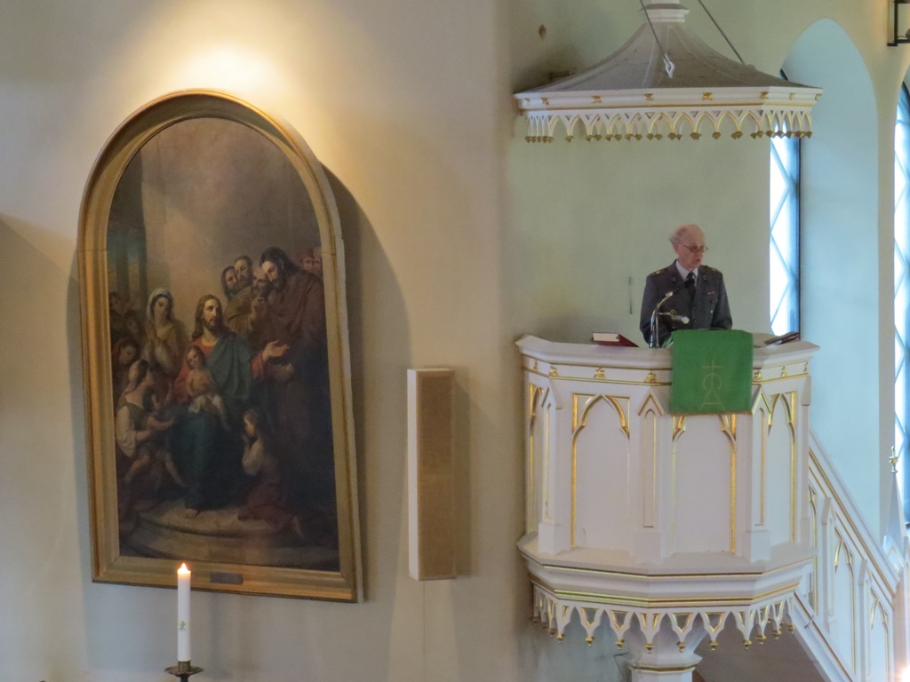 Räisälän kirkon alttaritaulu ja saarna kenttärovasti Juhani Liukkonen.