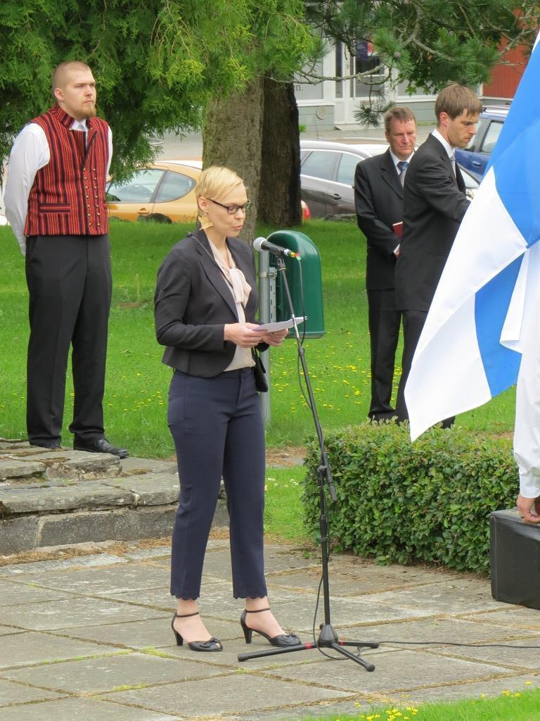 Kunnianosoitus sankarihaudoilla. Puhe Tuula Jyske.