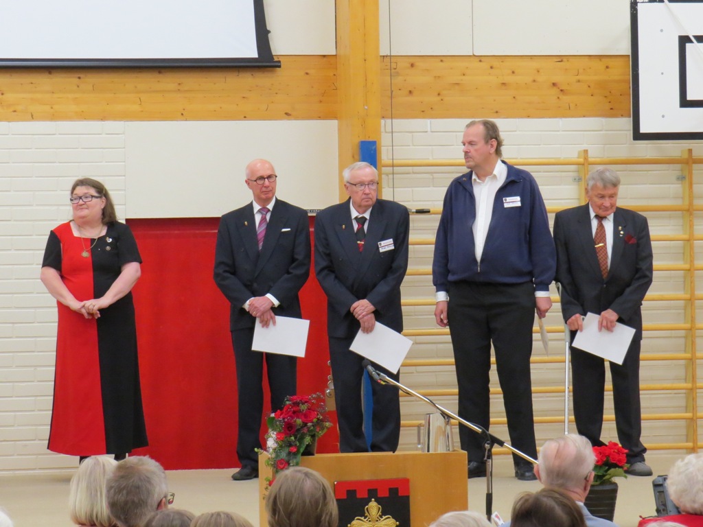 Karjalan Liiton ansiomerkin ja Räisäläisten Säätiön huomionosoituksen saajat.