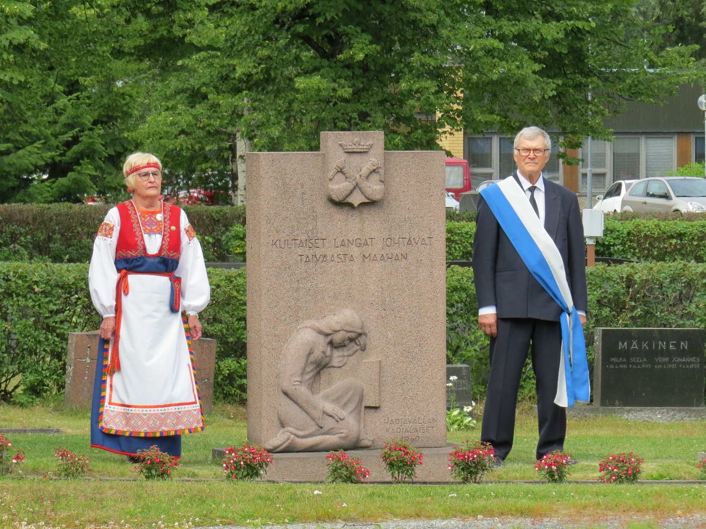 Kunnianosoitus Sankarihaudalla ja Karjalaan jääneiden vainajien muistomerkillä.