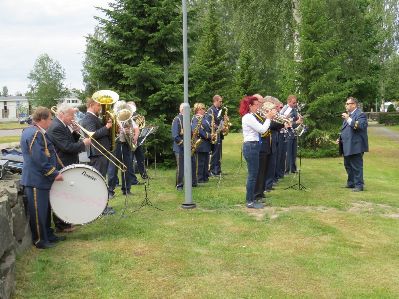 Kunnianosoitus Sankarihaudalla ja Karjalaan jääneiden vainajien muistomerkillä. Musiikkia Harjavallan Soittokunta.