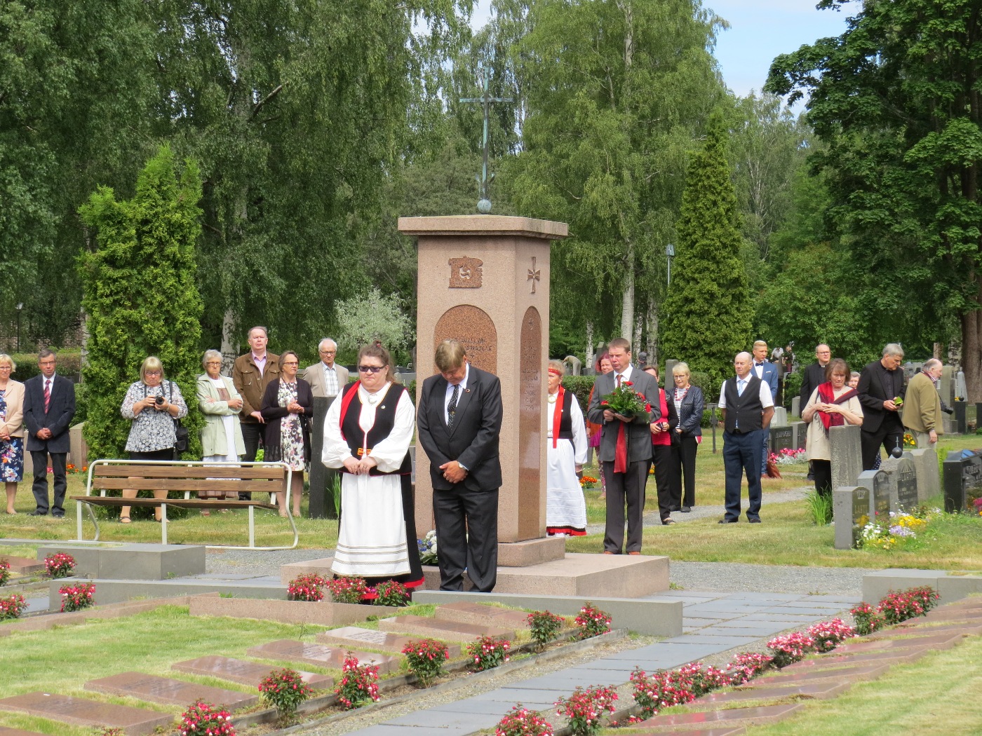 Kunnianosoitus Sankarihaudalla ja Karjalaan jääneiden vainajien muistomerkillä. Seppelettä laskemassa Räisäläisten Säätiön sihteeri Kirsti Mäkitalo ja hallituksen Räisäläisten Säätiön puheenjohtaja Jouko Perttu.