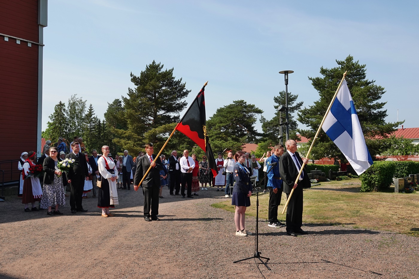 Kunnianosoitus Sankarihaudalla ja Karjalaan jääneiden vainajien muistomerkillä. Suomenlippu Jorma Haikonen.
