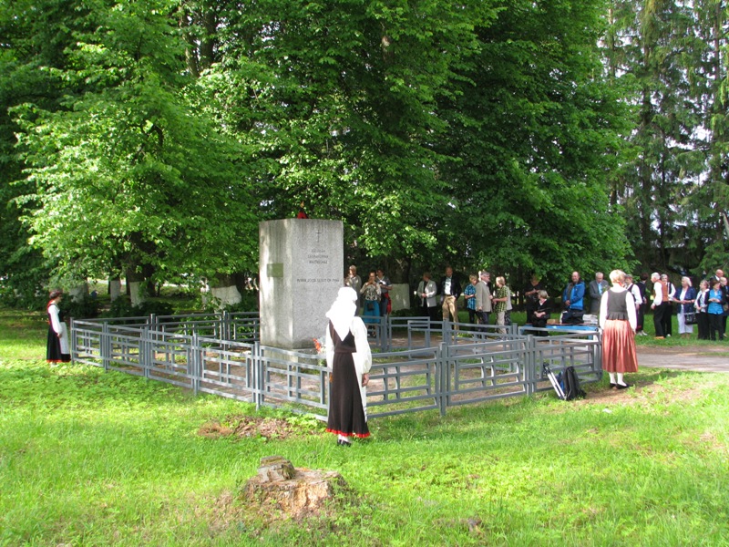 Muistotilaisuus hautausmaan muistomerkillä.