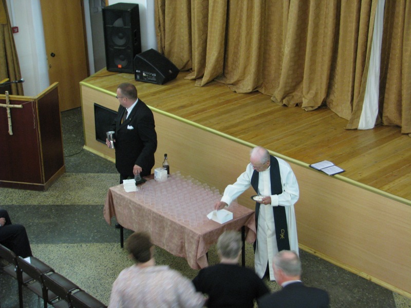 Räisälän kirkon jumalanpalvelus ehtoollisen valmistelu.