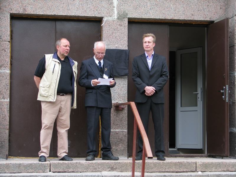 Räisälän kirkon muistolaatan paljastus. (tulkki, Robert Rainio ja Eduard Kamnev)