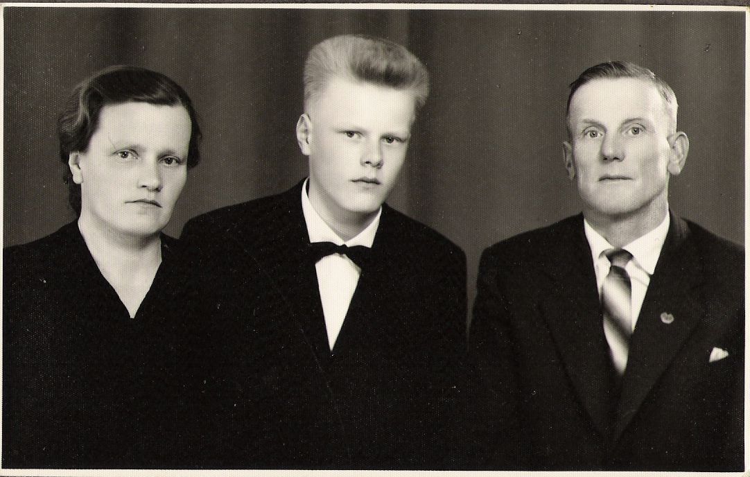 Kuvassa Toini ja Yrjö Karonen ja poika Aarre