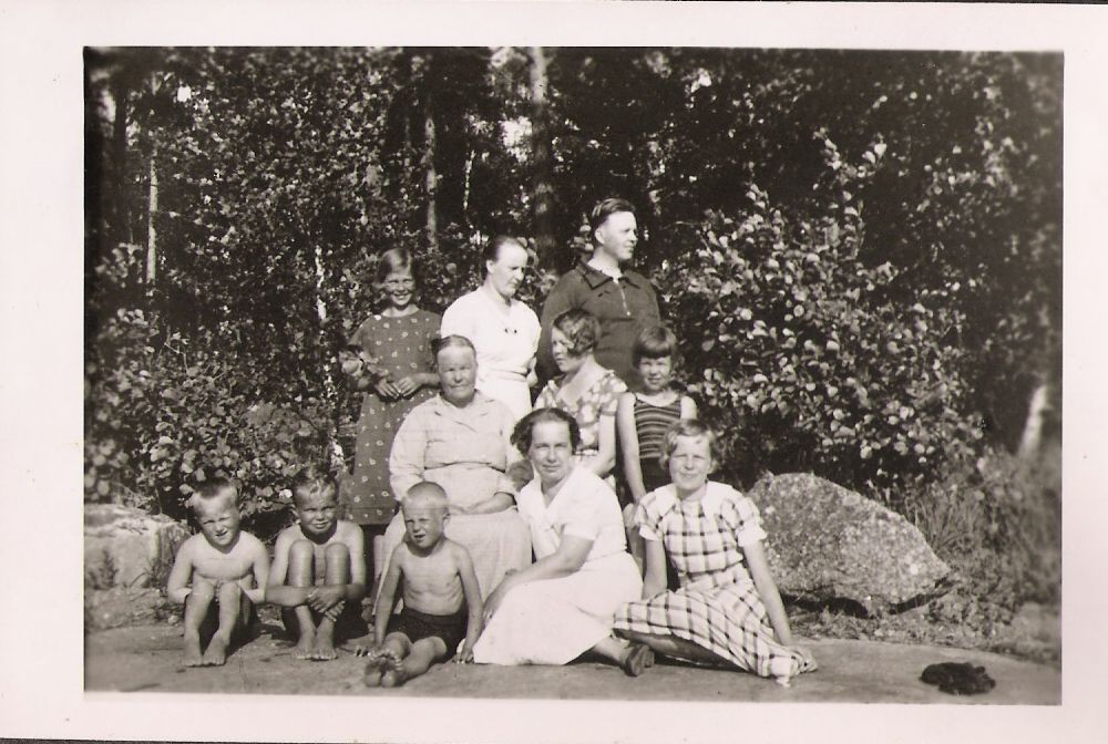 Kuva otettu Viipurissa (Uuraisen rannalla) Keskirivi vas. Loviisa Tikka os. Karjalainen, Anna Hilja Tikka, takarivi keskellä Alma Tikka