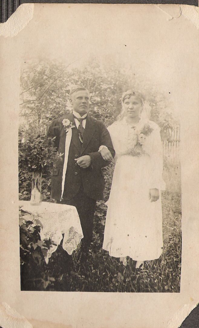 Juho Yrjönpoika Karonen s.1895 Hilma Närvänen (Muolaa) s. 1898 Häät vuonna 1919