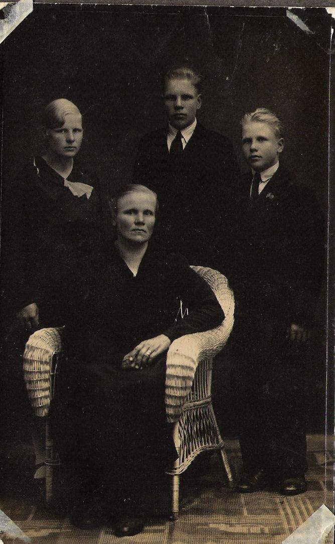 Varpu Lallukka (s. Karonen) ja vasemmalta lapset Irma, Martti ja Unto. (tunnistus: 2013-02-03)