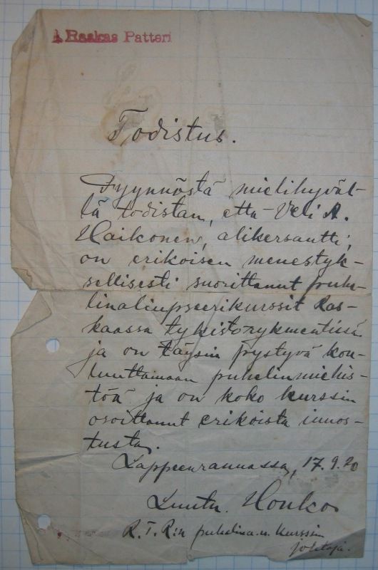 todistus 1920